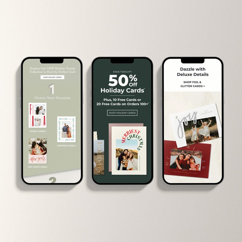 Shutterfly, Tiny Prints and Minted ads in catalogs, mailers and emails featuring some of my designs.