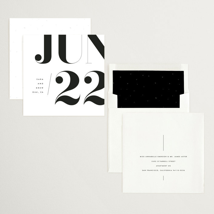 A cropped, calendar-inspired square, A sweeping palmĀ balanced by delicate type and hard-edged black juxtaposed with soft botanicals: These elements introduce hints of modernismĀ to elevate the traditional wedding invitation.